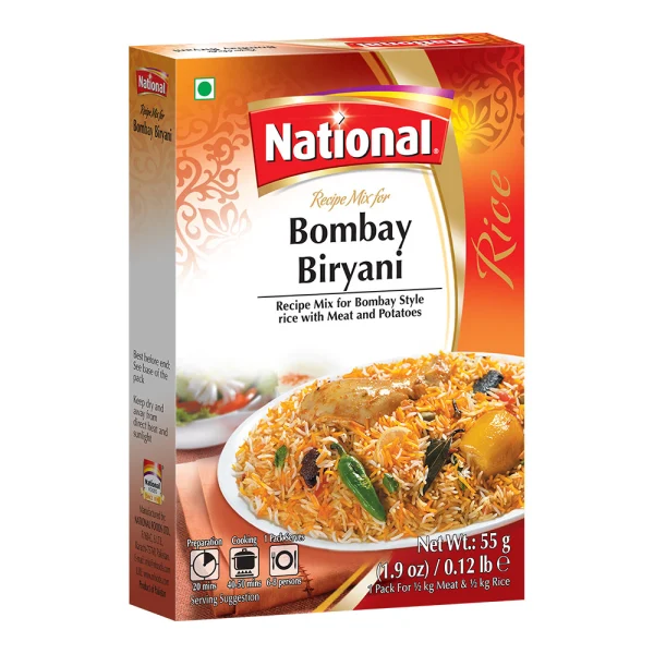 National Bombay Biryani Recipe Mix is for Bombay style rice with meat and potatoes, specially made by a panel of experts, using aromatic spices and the finest ingredients in exactly the right measure. It will enable you to cook delicious meals with ease.