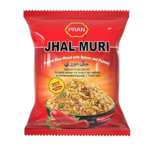 Experience the exciting flavors of Pran Jhal Muri in Wasabi! This 150g pack features a crunchy mix of puffed rice, spices, and peanuts with a unique wasabi kick. A perfect on-the-go snack with an irresistible blend of savory, spicy, and tangy notes.