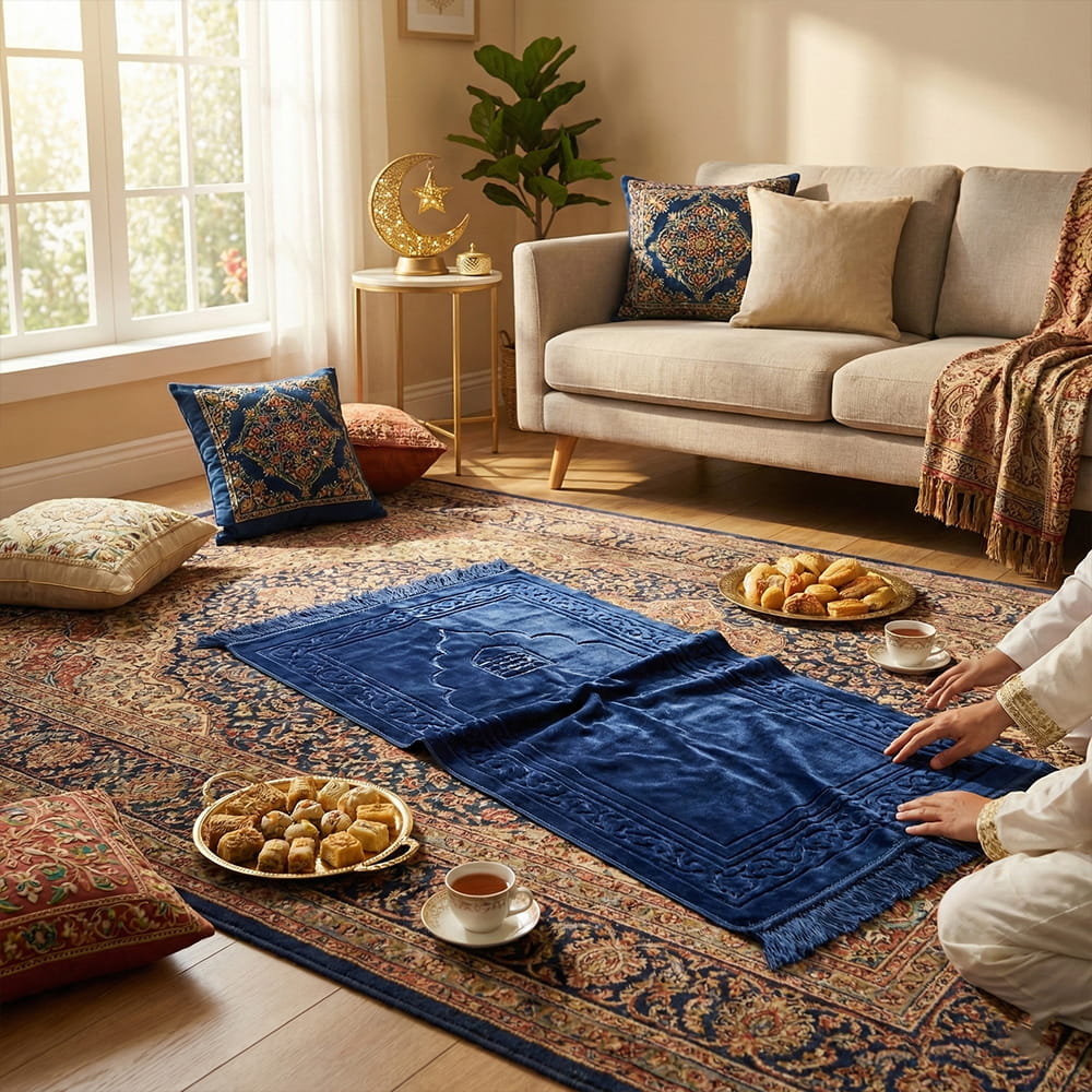 Premium Velvet Quilted Prayer Mat – Blue | Pack of 1