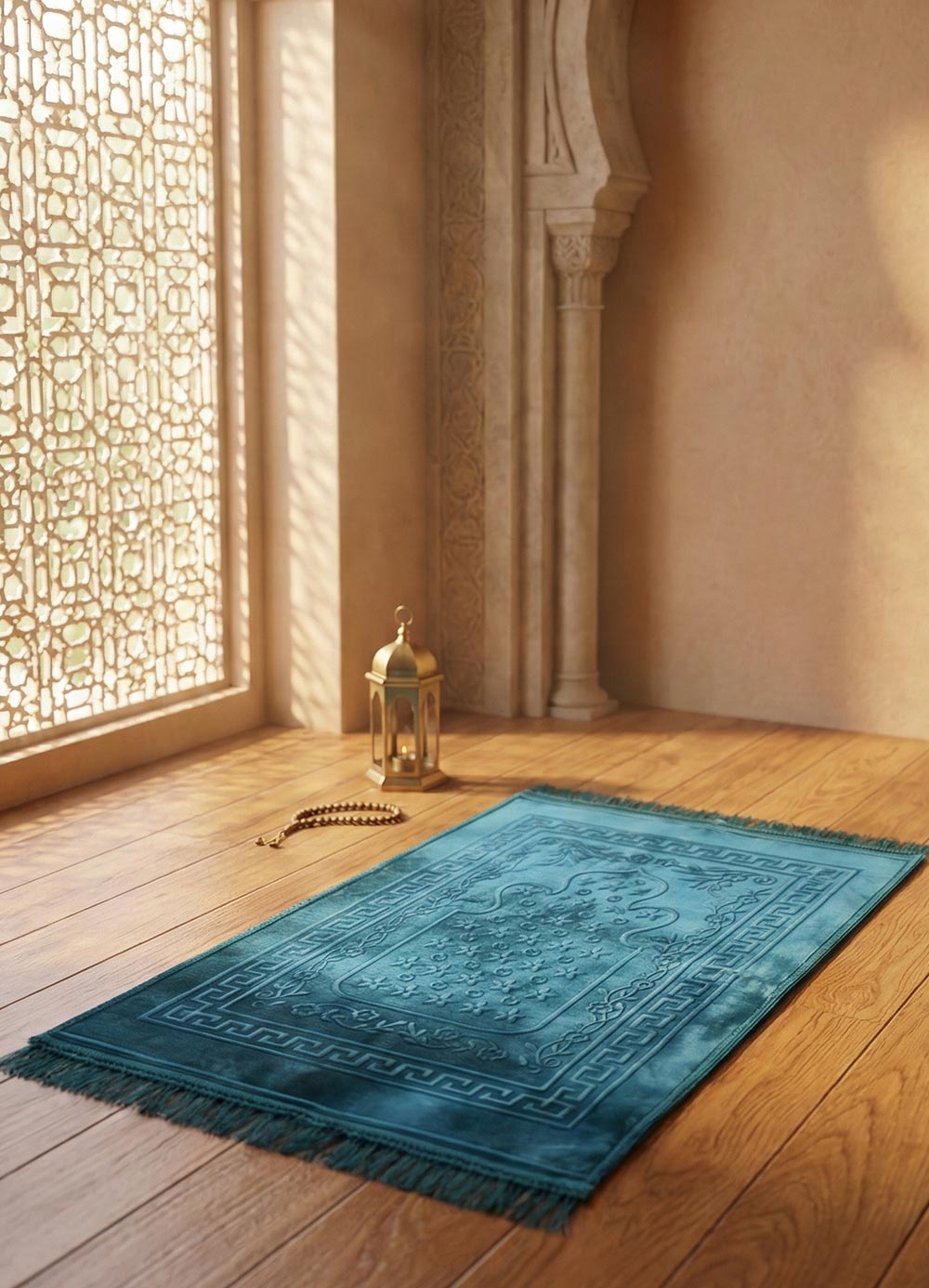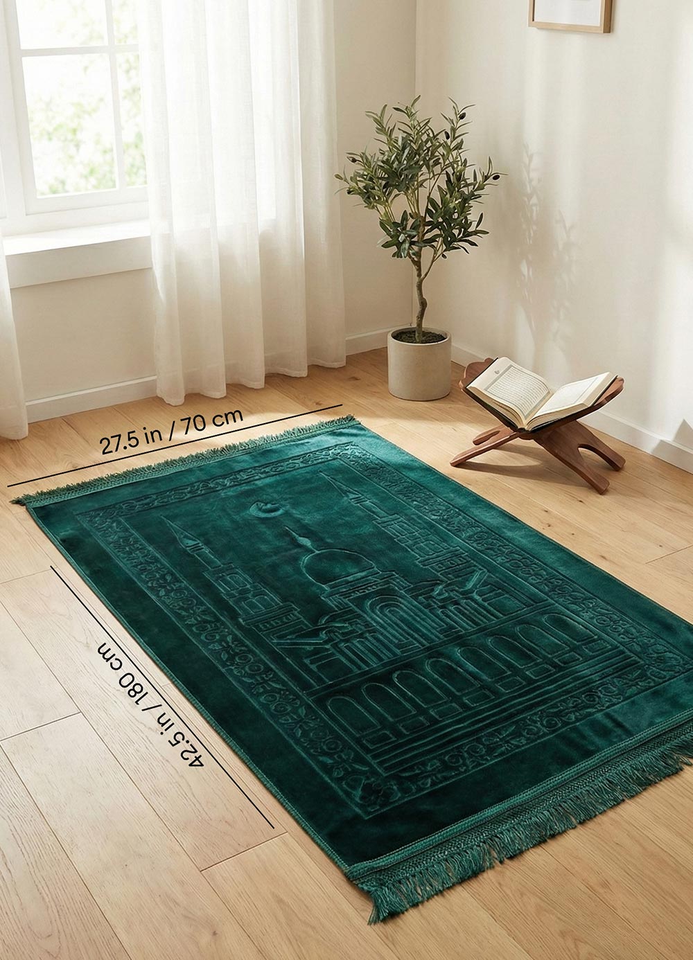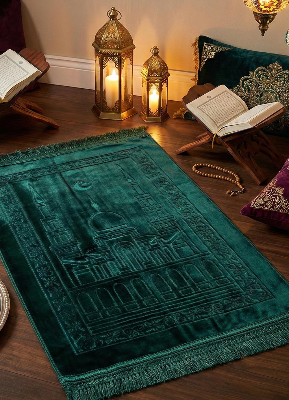 Premium Velvet Quilted Prayer Mat – Green | Pack of 1