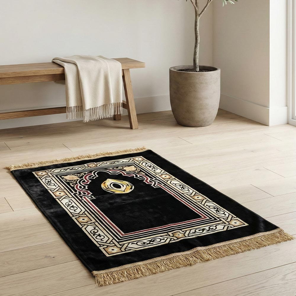 Elevate your daily worship with our Serene Heritage Premium Padded Velvet Prayer Rug Collection.