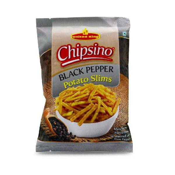 Enjoy the unique flavor of United King Chipsino Black Pepper Potato Slims 75G from Pakistan! Our chips are made with natural ingredients and have a light, crunchy taste with a hint of black pepper.